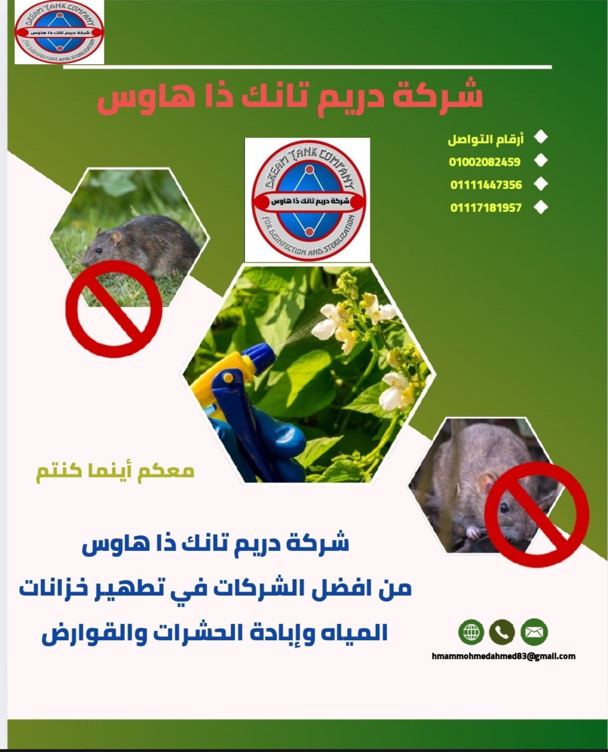 مع شركة دريم تانك لمكافحة الحشرات والقوارض